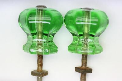 ANTIQUE FURNITURE CABINET DRAWER PULLS GREEN GLASS ORIG