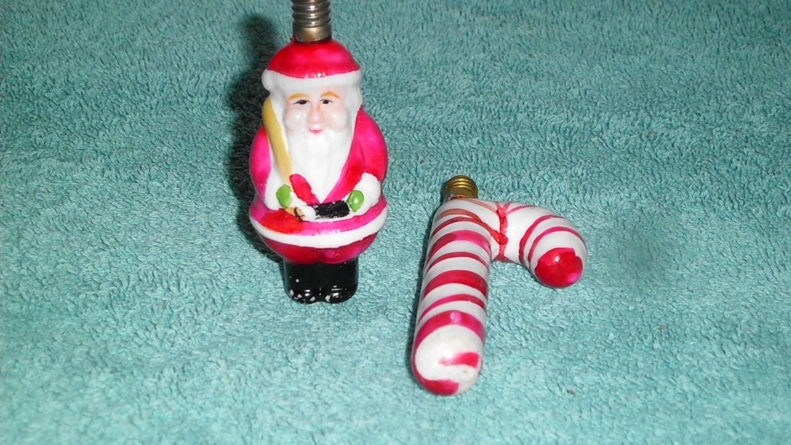 Title (ebay affiliate link): Vintage Milk Glass Figural Santa Claus Candy Cane Christmas Light Bulbs Japan