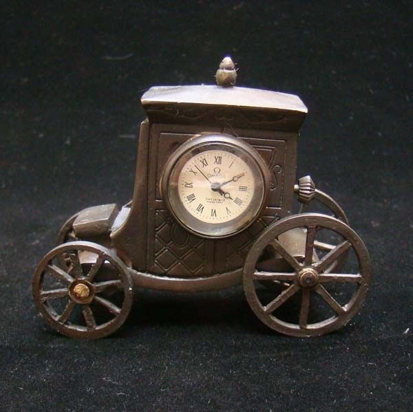 Collectible Handmade Carving Statue Car Copper Bronze Mechanical Clock Art Deco