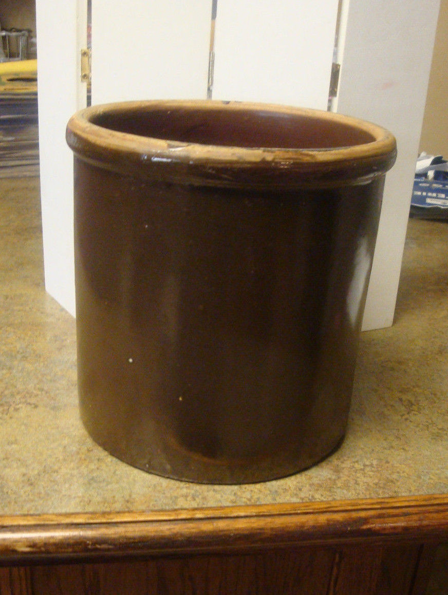 Title (ebay affiliate link): Antique Vintage Stoneware Glazed Brown Pottery Crock 8" T x 71/2 W Excellent