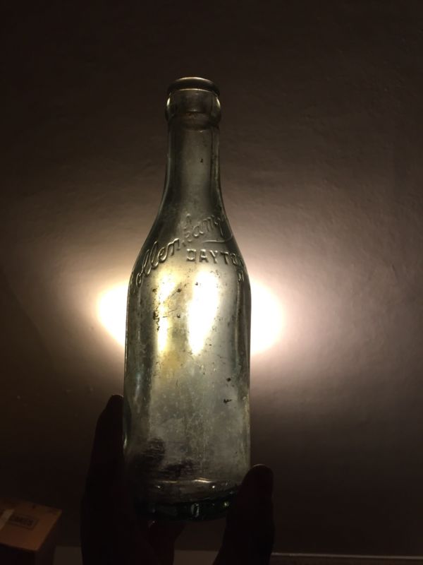 Rare Antique Hollenkamp Soda Bottle 7 Oz Dayton Ohio HPco Aqua Crown