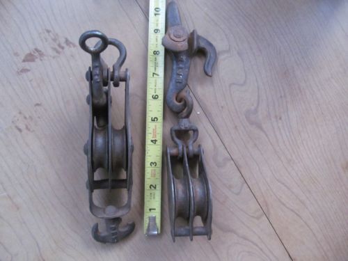 Title (ebay affiliate link): 2 Vintage Metal Barn Pulleys Block and Tackle