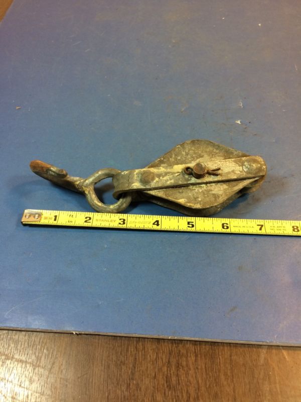 Title (ebay affiliate link): VINTAGE METAL WHEEL BLOCK AND TACKLE FARM/ BARN PULLEY with Hook