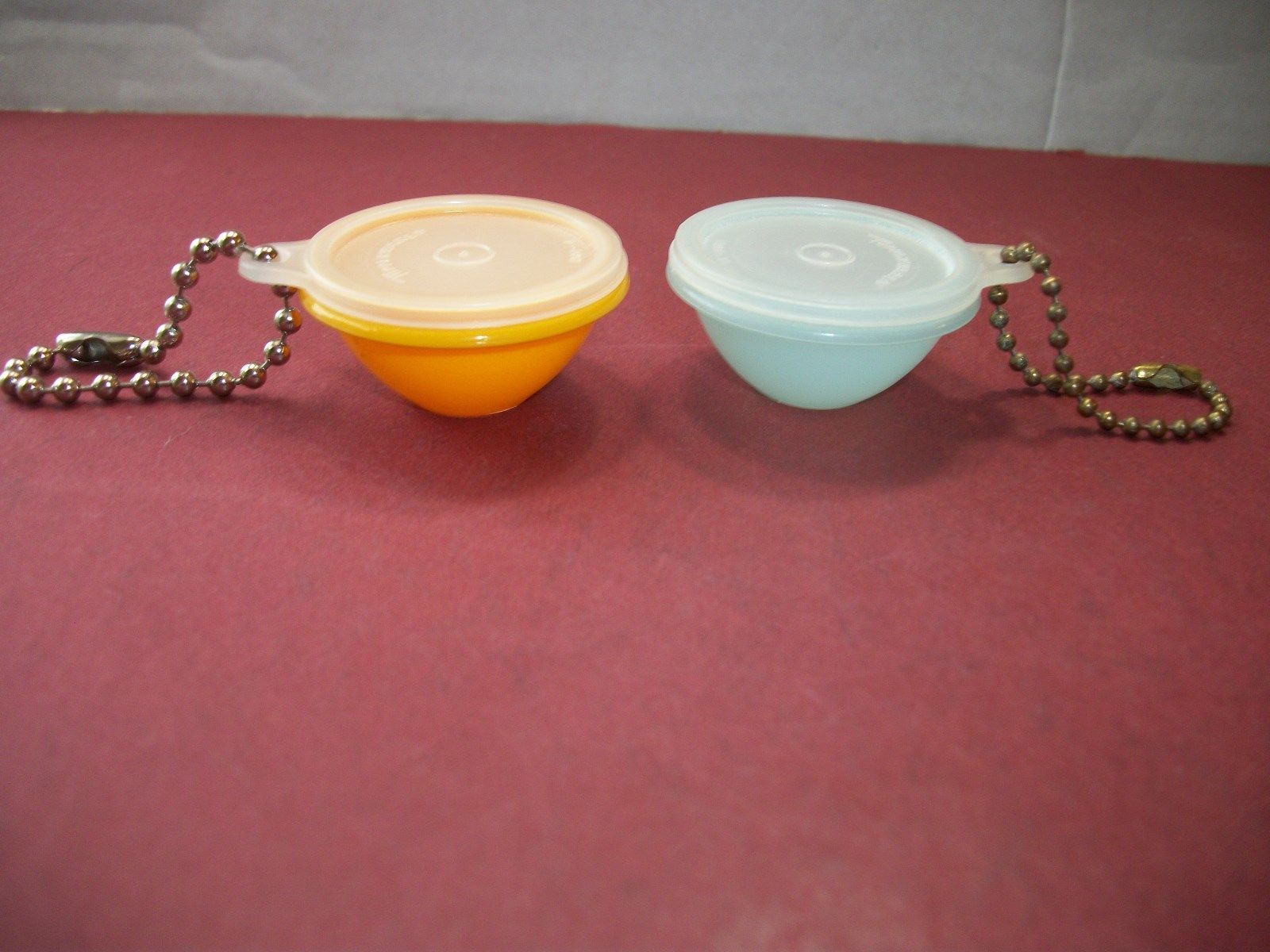 Title (ebay affiliate link): Vintage Tupperware Pill Box Key Chains 1 Blue 1 Gold NOS