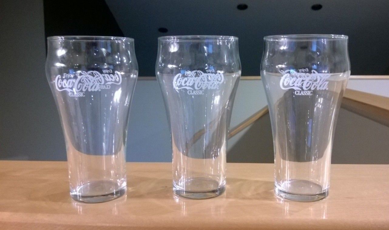 (3) Enjoy Coca-Cola Classic Bell Shaped Vintage Clear Drinking Fountain Glass