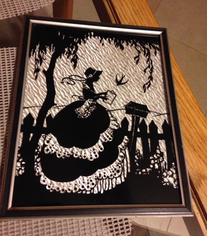 Title (ebay affiliate link): VINTAGE SILHOUETTE PICTURE FRAME WOMAN BIRD 1934 UNIQUE