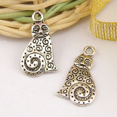 4pcs Cat Charms Cat Pendants Antique Silver Tone 19*10mm, Jewelry Making DIY