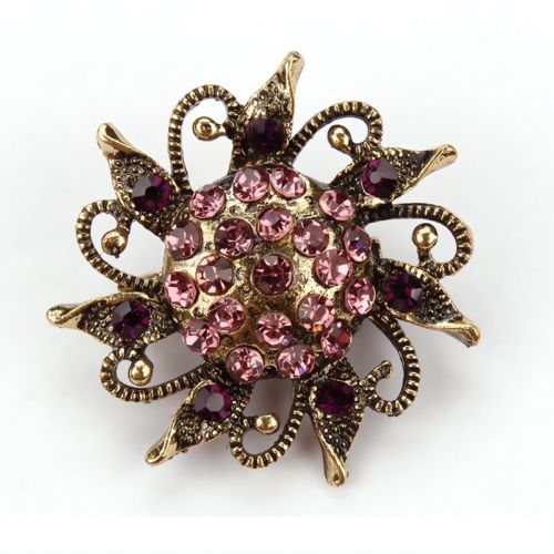 Purple Sunflower Antique Crystal Scarf Pin and Brooch