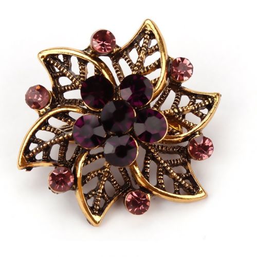 Purple Hollow Six Leaves Crystal Antique Pin and Brooch