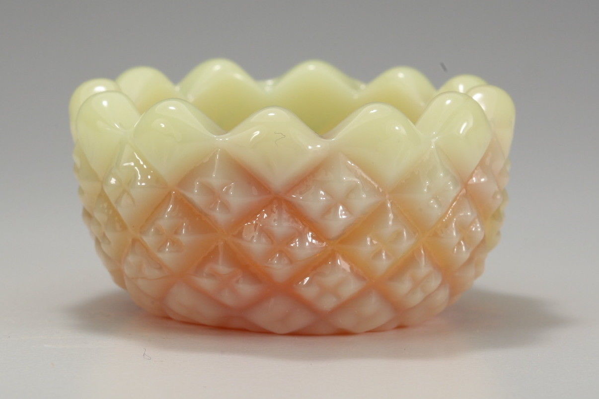 Stunning Peach blow Custard & Pink Milk Glass Sawtooth Open Salt Dish Dip Mosser