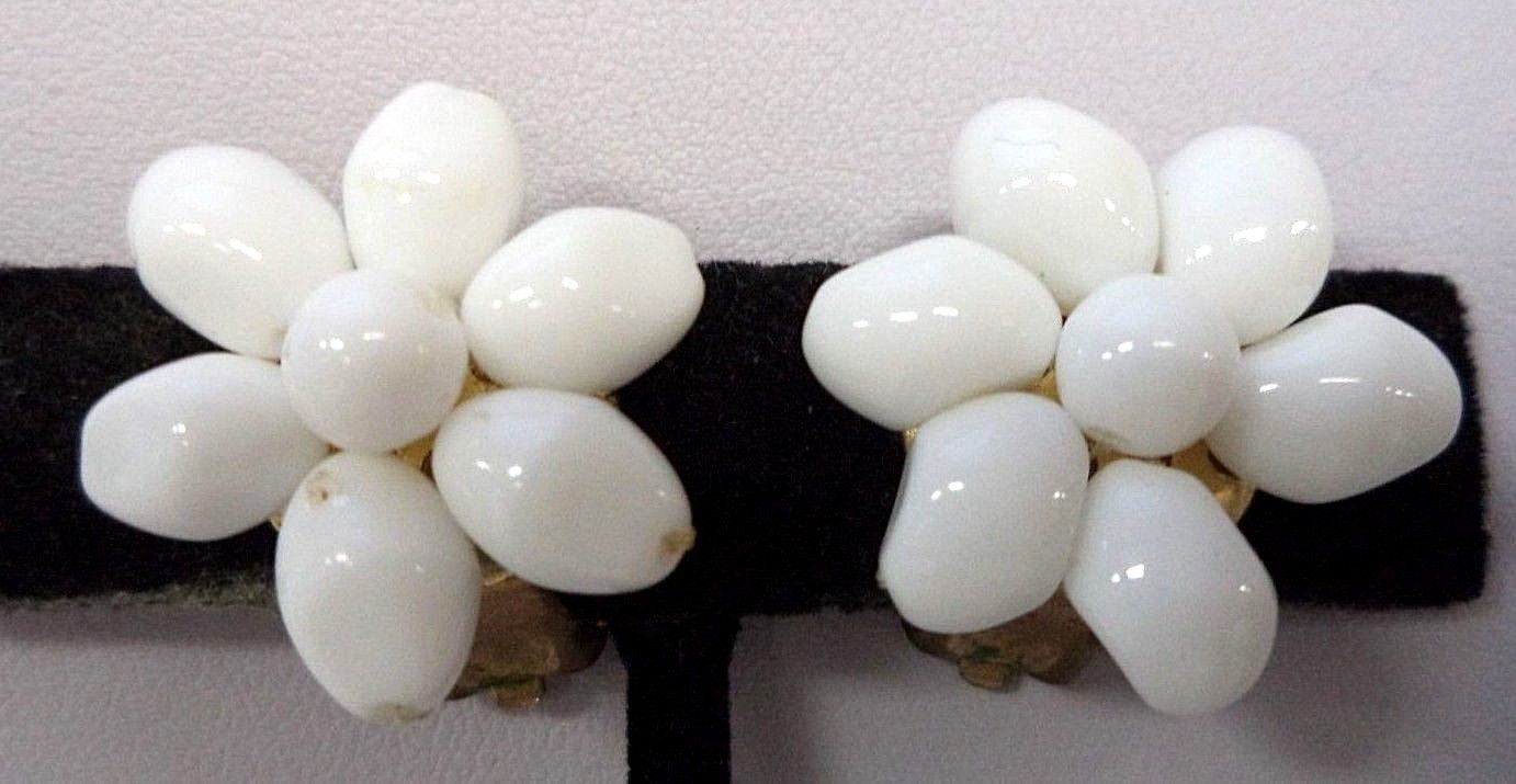 Title (ebay affiliate link): VINTAGE ESTATE GOLD TONE MILK GLASS BEADED FLOWER 7/8" CLIP EARRINGS!!! 5207L
