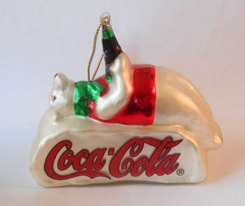 Title (ebay affiliate link): Coca Cola Glass Ornament~Polar Bear holding a Coke, on Iceberg EC