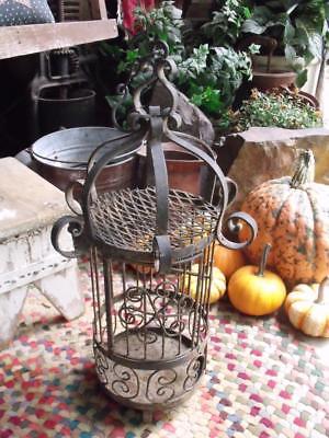 Rustic Primitive Vintage Gothic Iron Hanging Bird Cage GREAT Candle Lantern