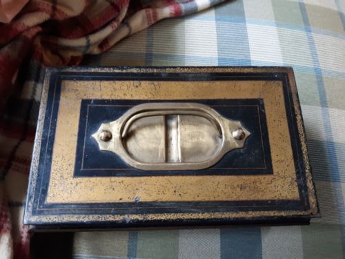 Title (ebay affiliate link): Antique Primitive Black Tole Deed Cash Lock Box With Insert