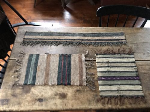 Title (ebay affiliate link): 3 Antique Candle Mats Table Rug Runner Brown & Blue Country AAFA Textile Worn