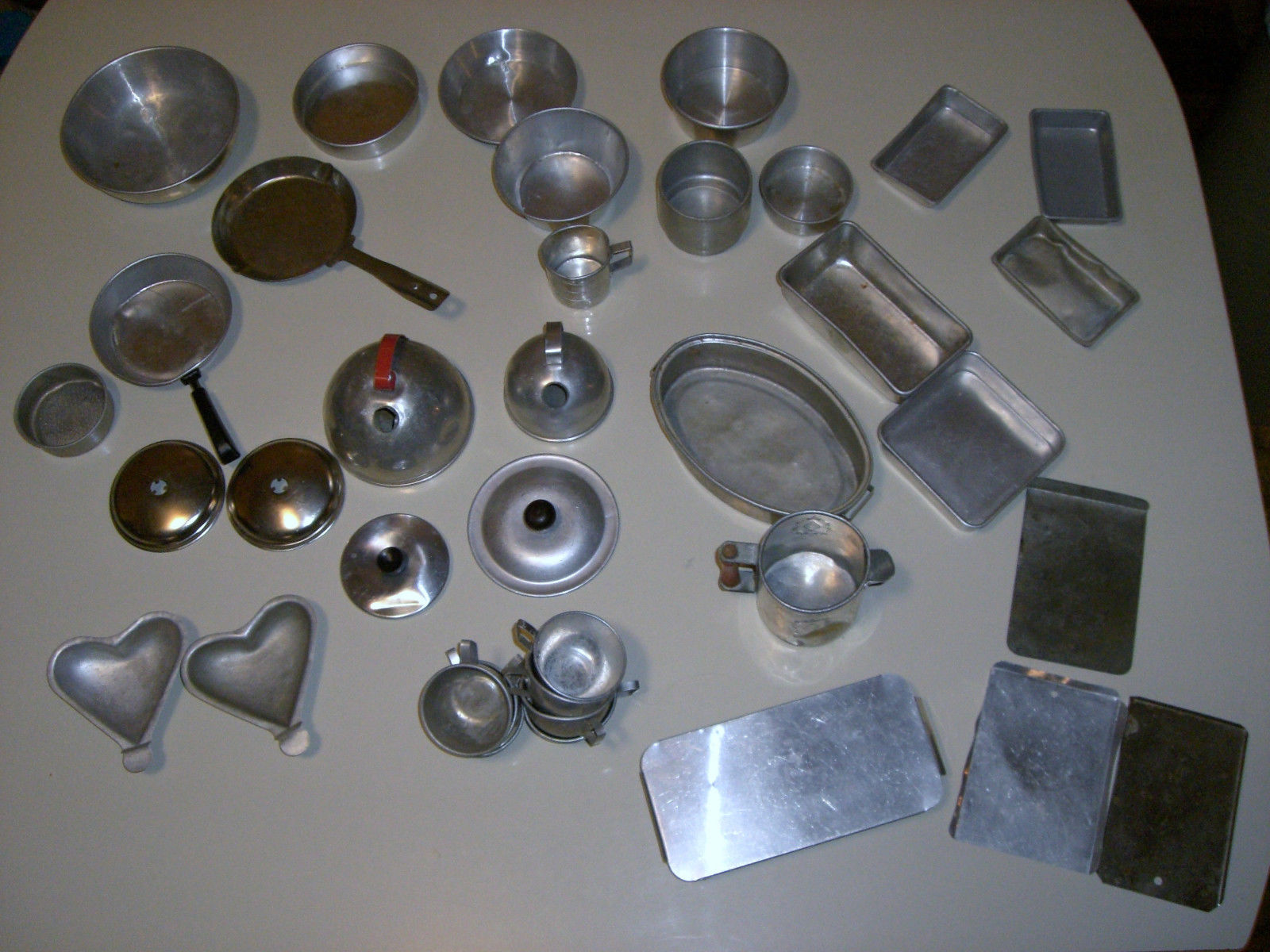 Title (ebay affiliate link): Vintage Children''s Aluminum Cookware/Bakeware, Kitchen Set, 37 pcs 1950''s