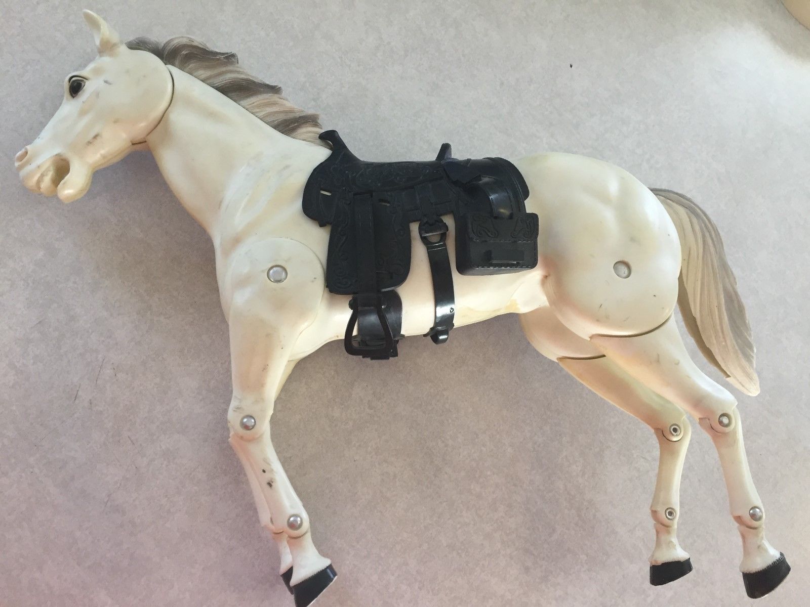 Title (ebay affiliate link): Rare Vintage 1973 ? Lone Ranger''s Horse pose-able Silver approx. 12" w/ saddle