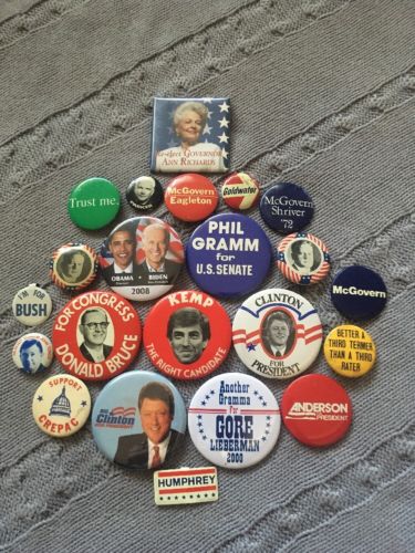 Title (ebay affiliate link): 21 Vintage/Contemporary Presidential Political Campaign Pinback Buttons & Tabs