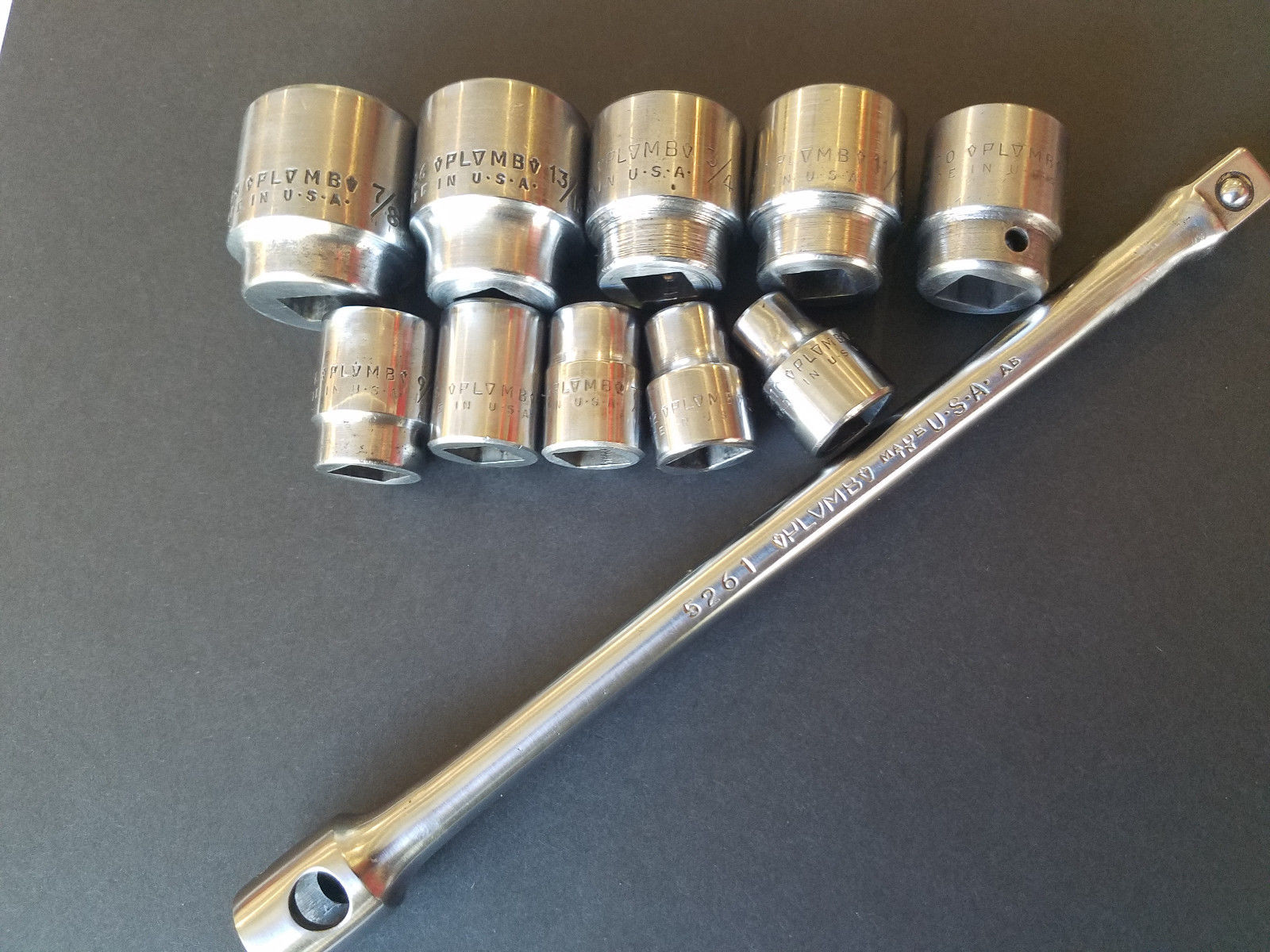 Title (ebay affiliate link): Plomb 3/8 drive socket lot; Extension 5261 with T-Bar retaining ball; polished