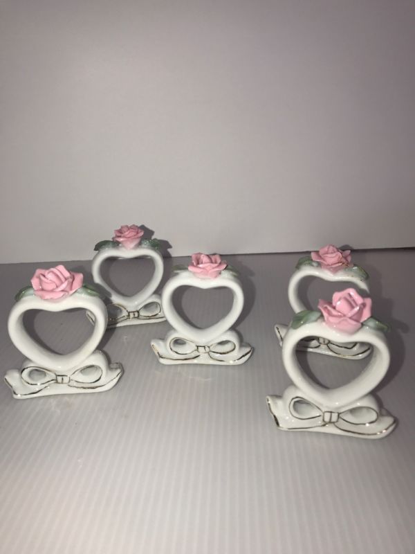Title (ebay affiliate link): Vintage Porcelain Capodimonte napkin rings holders Set of 5 Pink/White