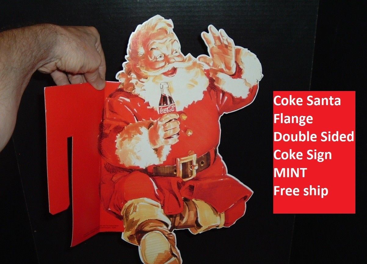 Title (ebay affiliate link): Coca Cola Santa Claus Cardboard Coke Advertising Flange Double-Sided Sign MINT
