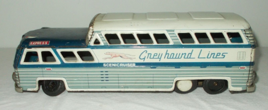 VTG 1950s Greyhound Lines Scenicruiser Bus Tin Litho Friction Toy M-732
