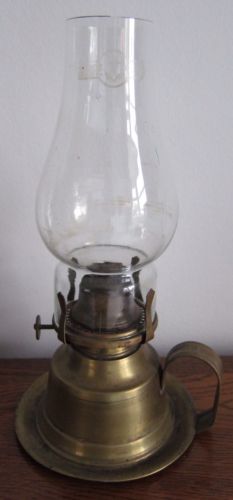 Title (ebay affiliate link): OLD BRASS CHAMBERSTICK OIL LAMP WITH GLASS CHIMNEY - Working Order