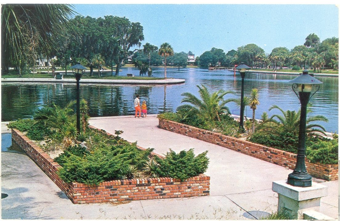 Vintage Florida Chrome Postcard Tarpon Springs Two Visitors Enjoy Beauty Bayou