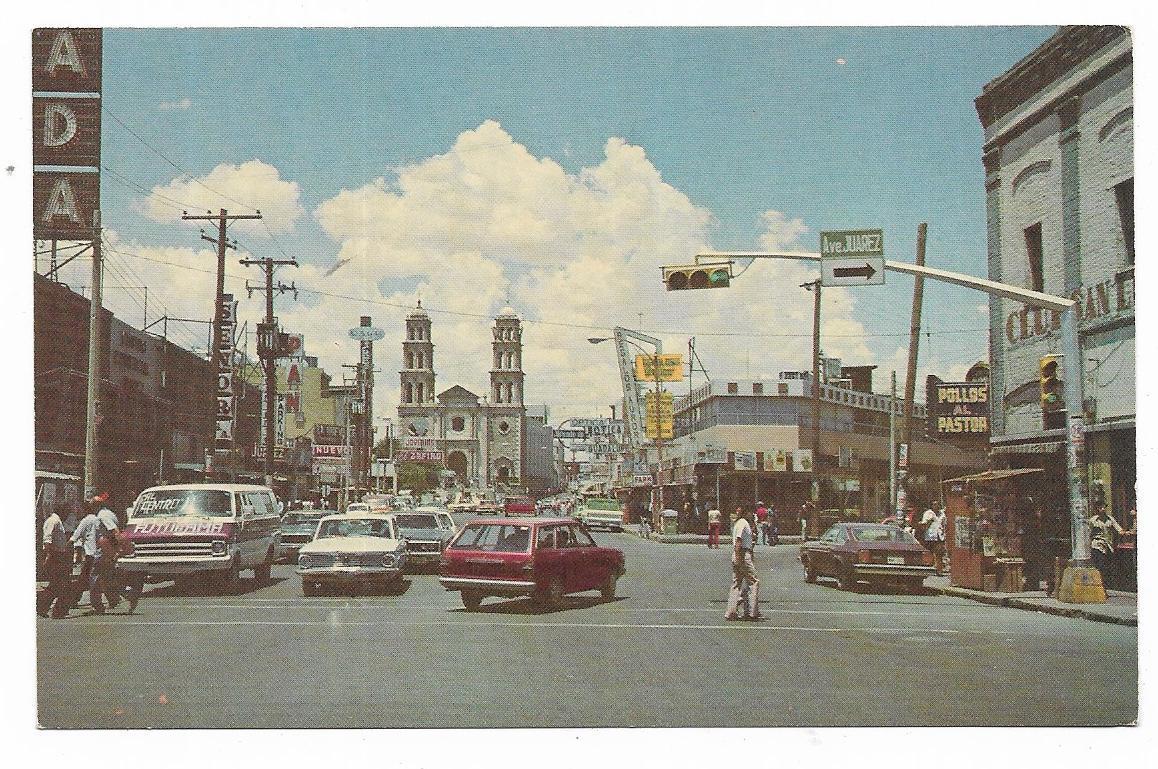 Vintage Mexico Chrome Postcard Av 16 de Septiembre Fondo Catedral Cd Juarez Chih
