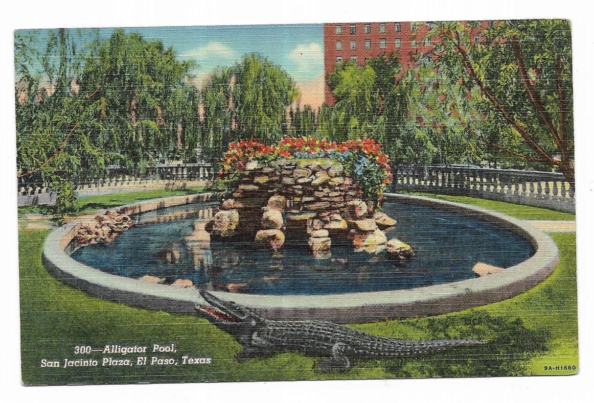 Title (ebay affiliate link): Vintage Texas Linen Postcard Alligator Pool San Jacinto Plaza El Paso