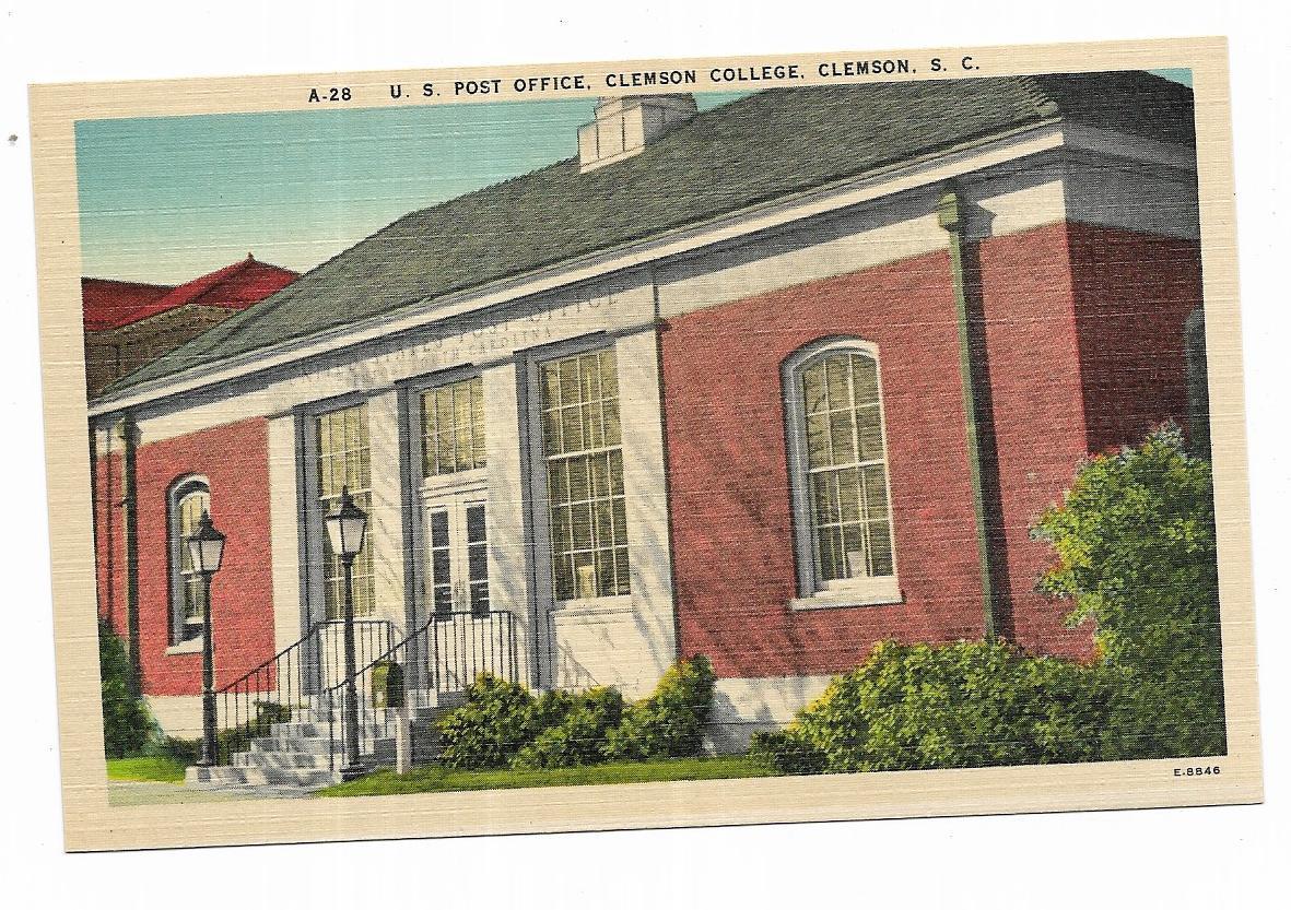 Vintage South Carolina Linen Postcard Clemson College Post Office