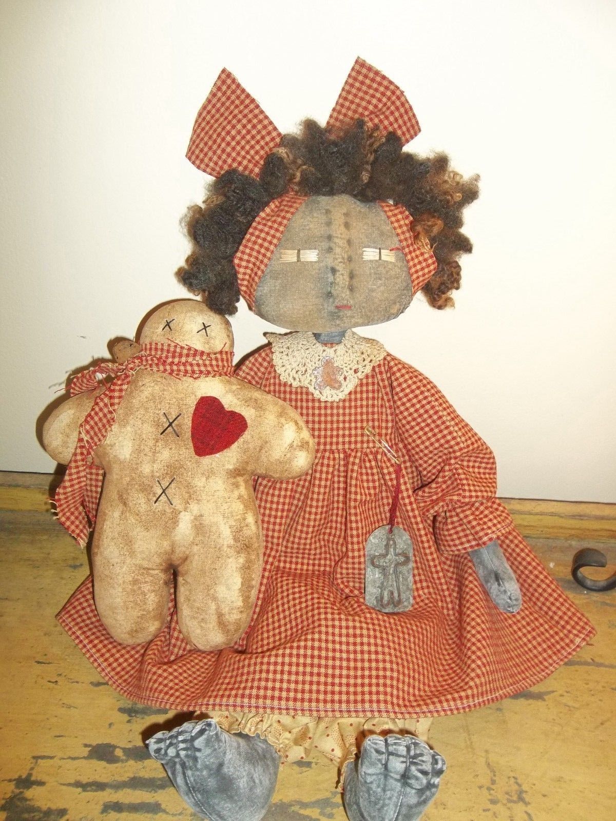 Title (ebay affiliate link): PRIMITIVE RAGGEDY BLACK FOLKART SWEET GINGERBREAD MAMMY DOLL W/GINGERBREAD MAN