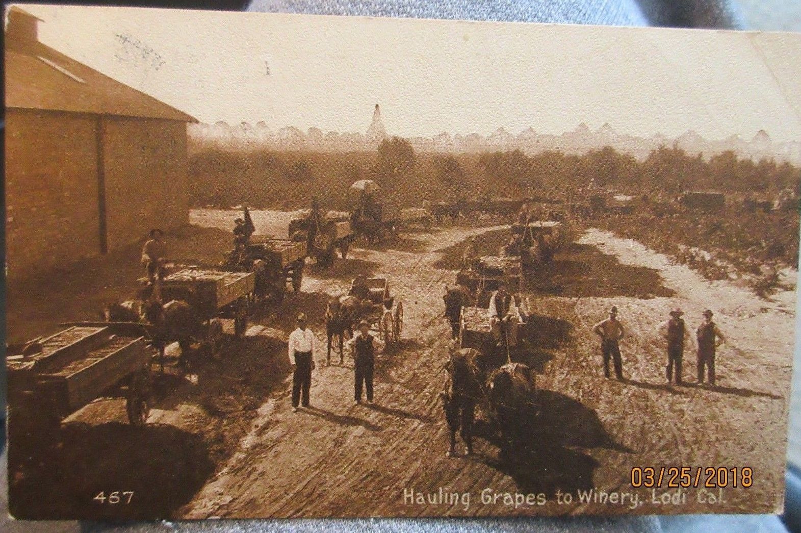 Title (ebay affiliate link): LODI, CALIFORNIA, 1911 POSTCARD, "HAULING GRAPES TO WINERY"
