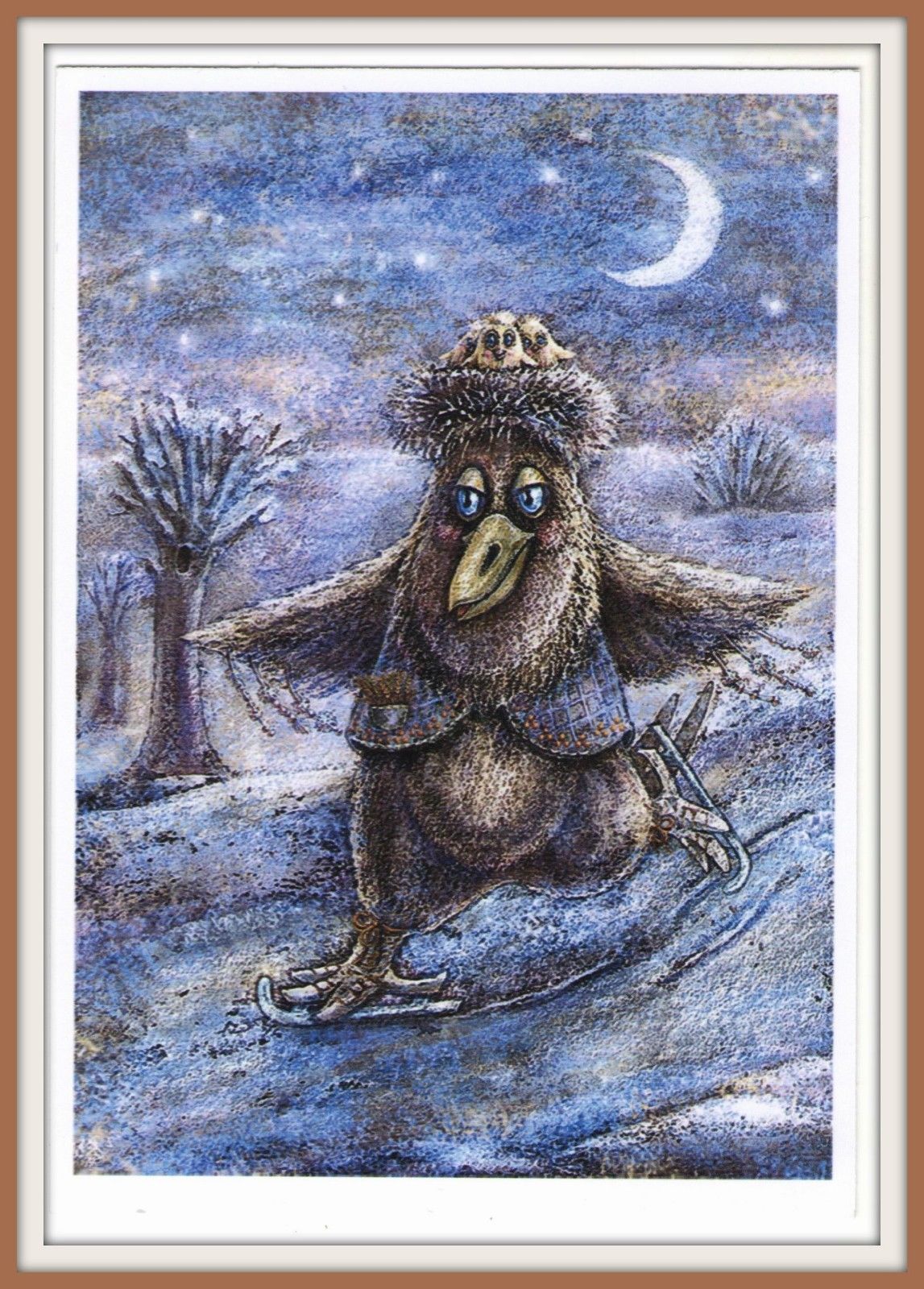 Title (ebay affiliate link): Mother Crow and Childs ICE SKATING Winter fun BIRD NEST Russian art Postcard md