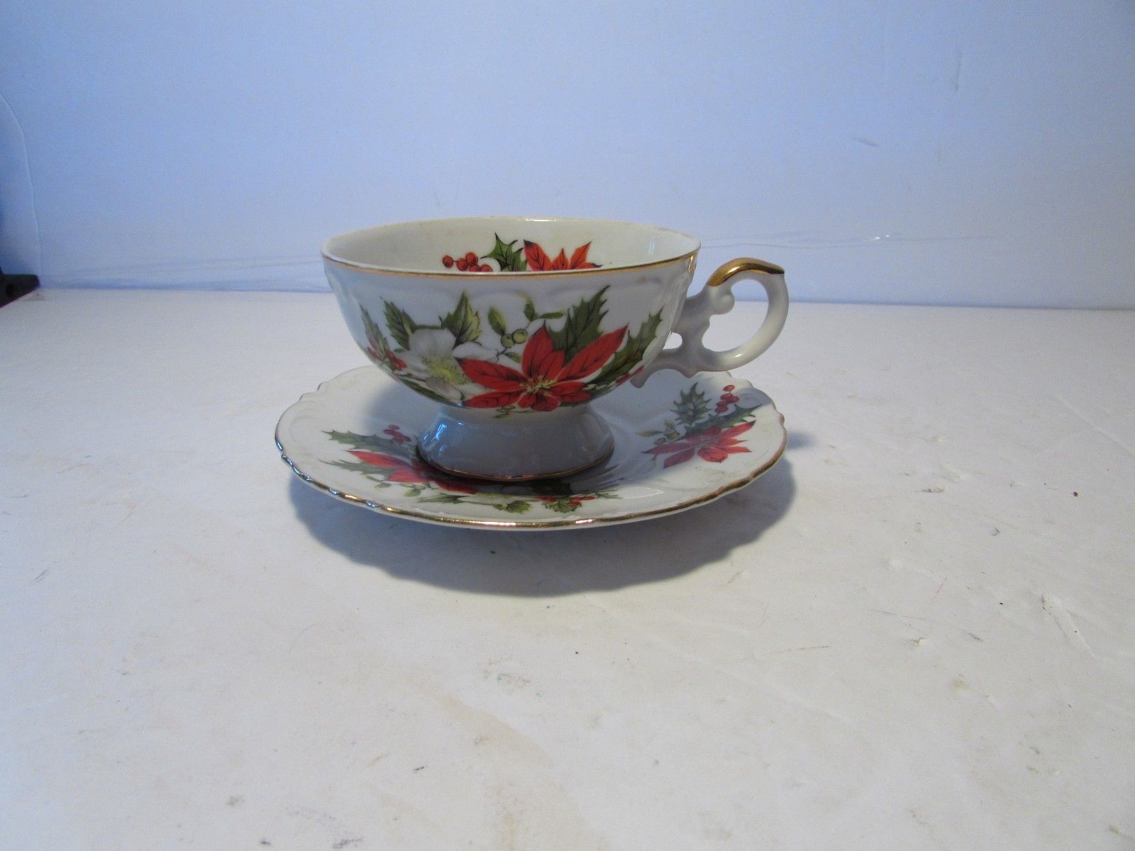 VINTAGE INARCO BONE CHINA CHRISTMAS POINSETTIA CUP AND SAUCER SET