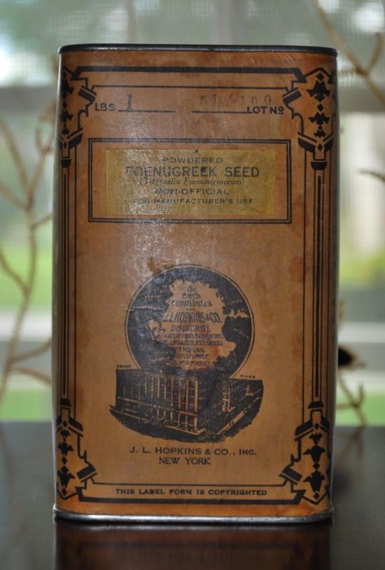 Title (ebay affiliate link): ANTIQUE PHARMACY MEDICINE FOENUGREEK SEED LARGE CARDBOARD TIN WITH CONTENTS