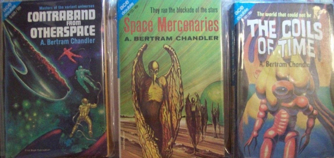 Title (ebay affiliate link): A Bertram Chandler, 3 Ace Double Science fiction paper backs