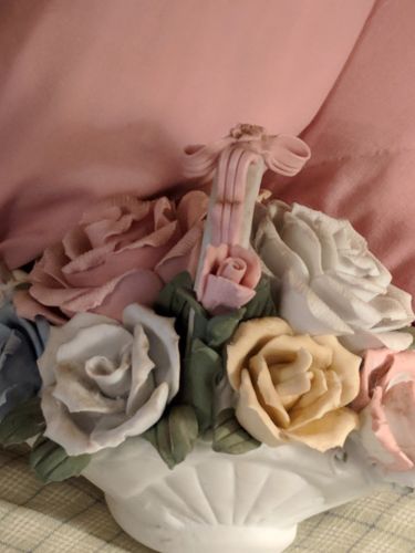 Title (ebay affiliate link): Vintage Capodimonte Flower Basket w/Ribbon Handle and Assorted Roses