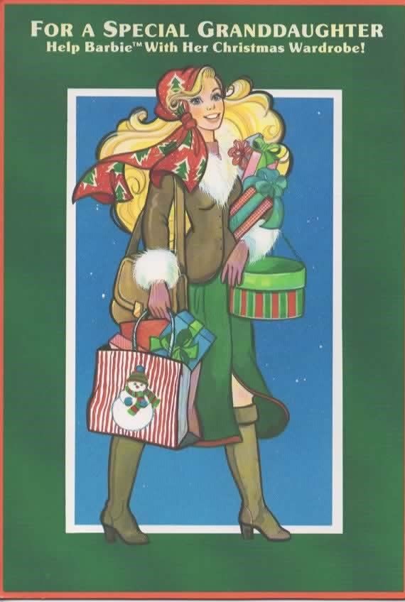 PAPER DOLL CARD, XMAS WITH BARBIE, 1980