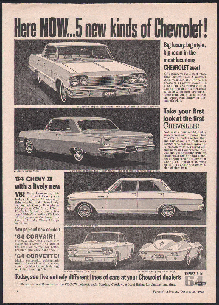 1964 Canadian Chevrolet ad Impala Chevelle Nova Corvair Corvette Canada