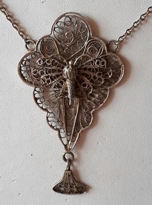 Antique Victorian Beautiful detailed Filigree Butterfly silver Lavalier Necklace