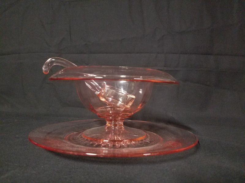 Vintage Pink Depression Glass Mayo Serving Set Ladel Bowl Plate 30s 40s 50s