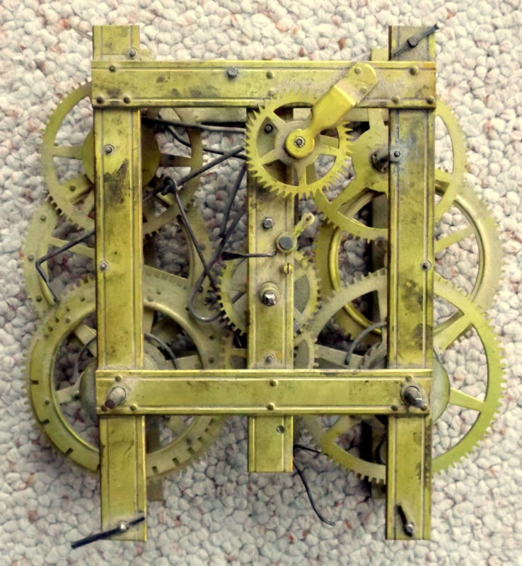Title (ebay affiliate link): Antique Strap Brass Type 8-Day Time & Strike Weight Driven Clock Movement