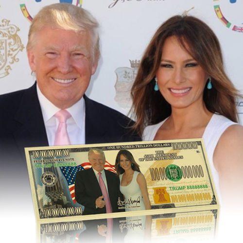 Title (ebay affiliate link): WR President Donald Trump First Lady One Hundred Trillion Dollars Gold Banknote