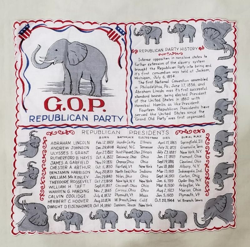 Title (ebay affiliate link): Vintage 60''s GOP Republican Party History Hankie President Lincoln 2 Eisenhower