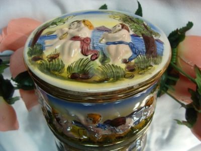 Cherub Faience Capodimonte Italy Majolica Box Jar