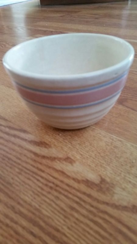 Title (ebay affiliate link): Vtg McCoy Small 5" pink and Blue striped Beehive Ribbed 6" Nesting Bowl
