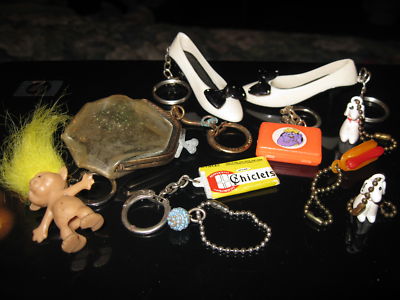 Title (ebay affiliate link): LOT OF VINTAGE KEYCHAINS TROLL CHICLETS HOTDOG SHOES
