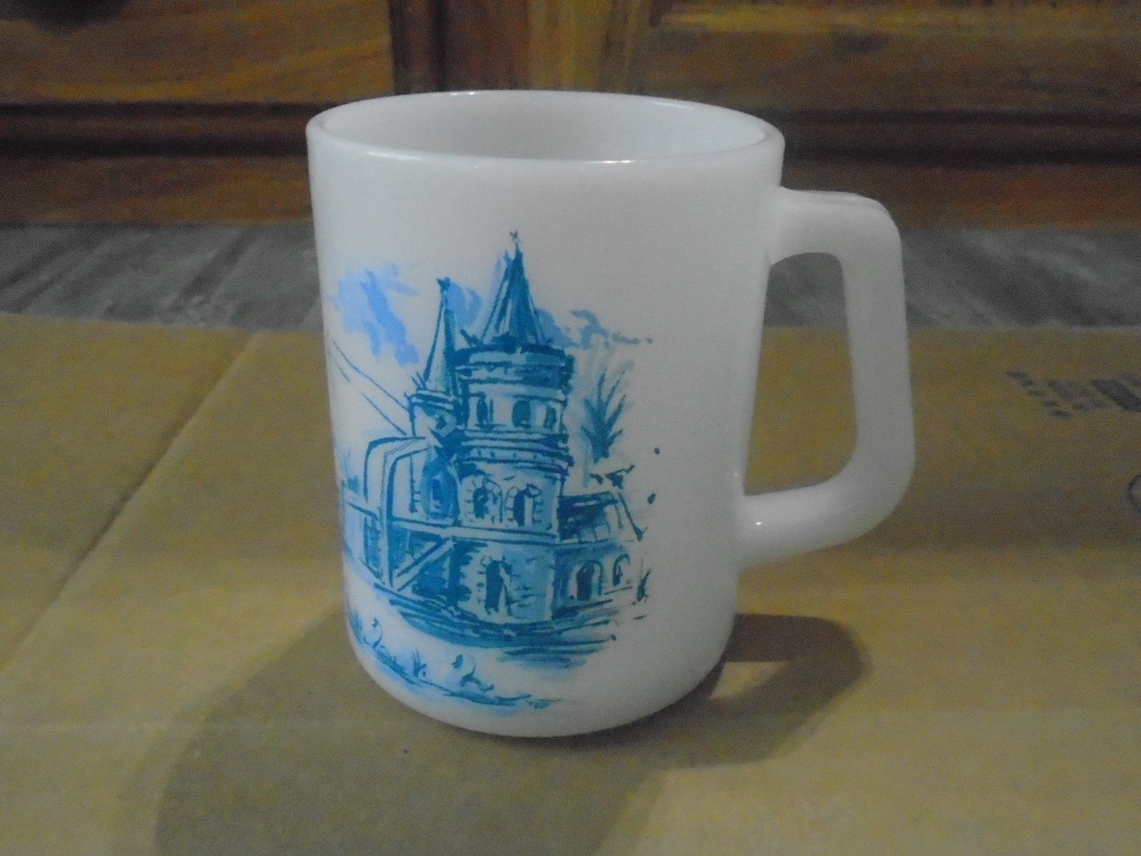 Vintage Federal milk glass MUG with Castle Design