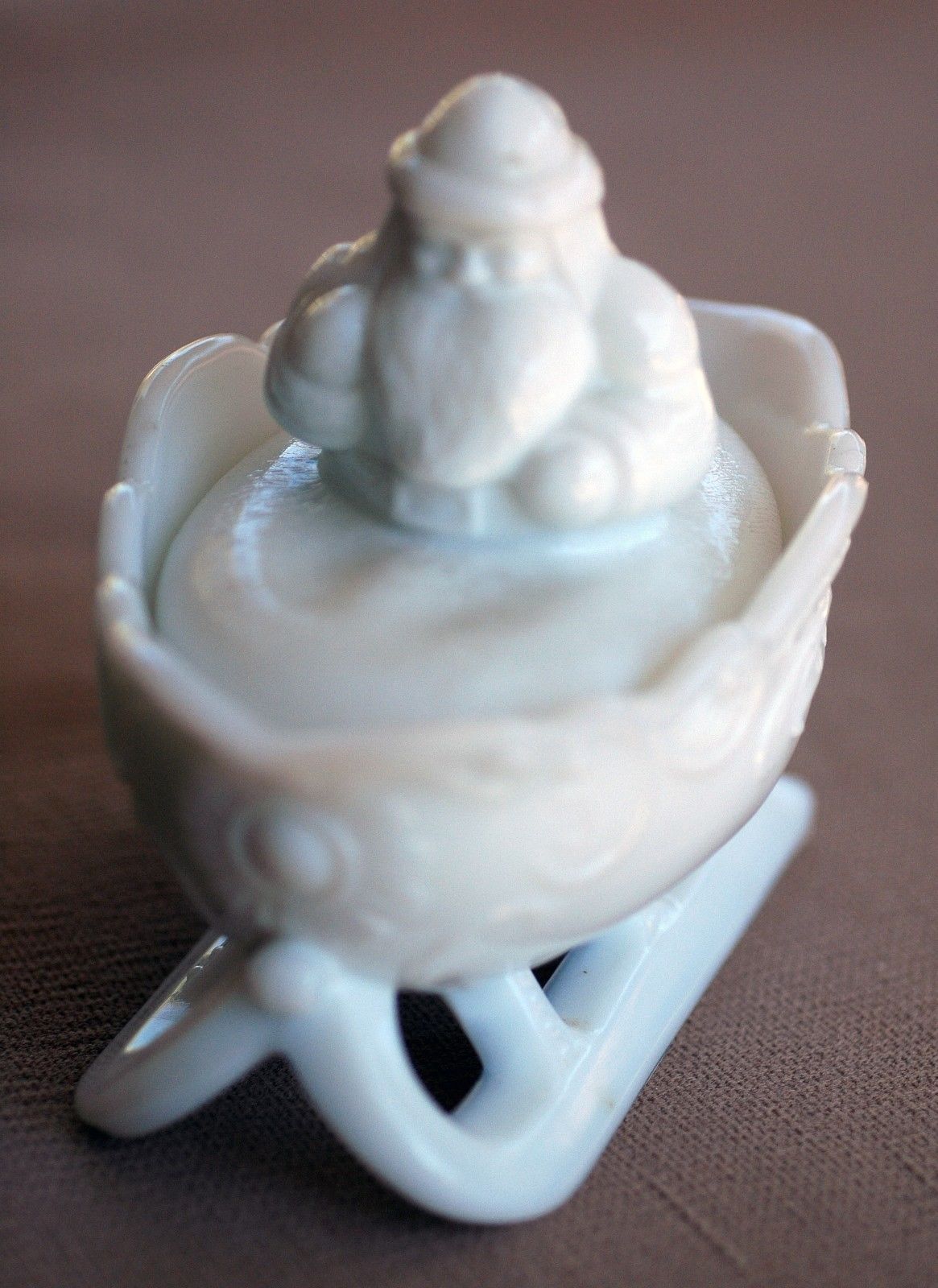 Title (ebay affiliate link): WESTMORELAND SANTA SLEIGH COVERED DISH MILKGLASS VINTAGE CHRISTMAS